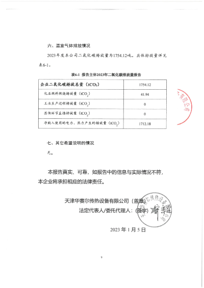 華賽爾公示《2023年溫室氣體排放報(bào)告》